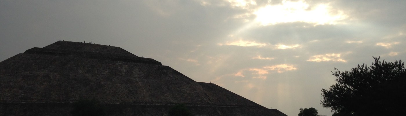 Next, we headed to the pyramids of Teotihuacan. When we arrived, we were running behind schedule, so we only had fifteen minutes to climb one of them. Some people were intrepid enough to run up and down the pyramid in that time; I climbed part of the way up and took in the view.