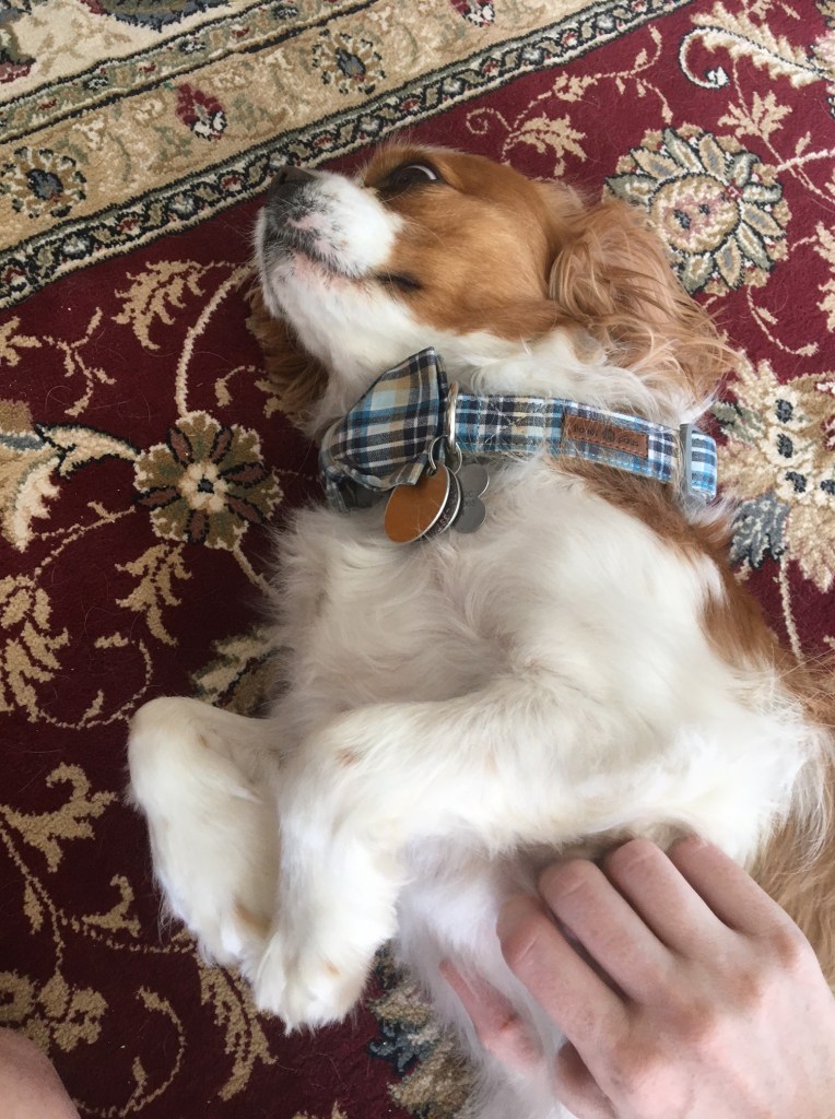 • After March Madness became March Sadness, I organized a different kind of bracket pool: Aughie Madness! I took the predicted bracket for this year made by Sports Illustrated, printed out all the team logos, and put them before Aughie with a treat in front of each to see which one he’d pick. Filling out March Madness brackets is a big tradition in my family, so I was glad to be able to continue it, albeit in a very untraditional year. My family and I had fun filming each set of games, and Aughie really enjoyed the concept of extra treats.